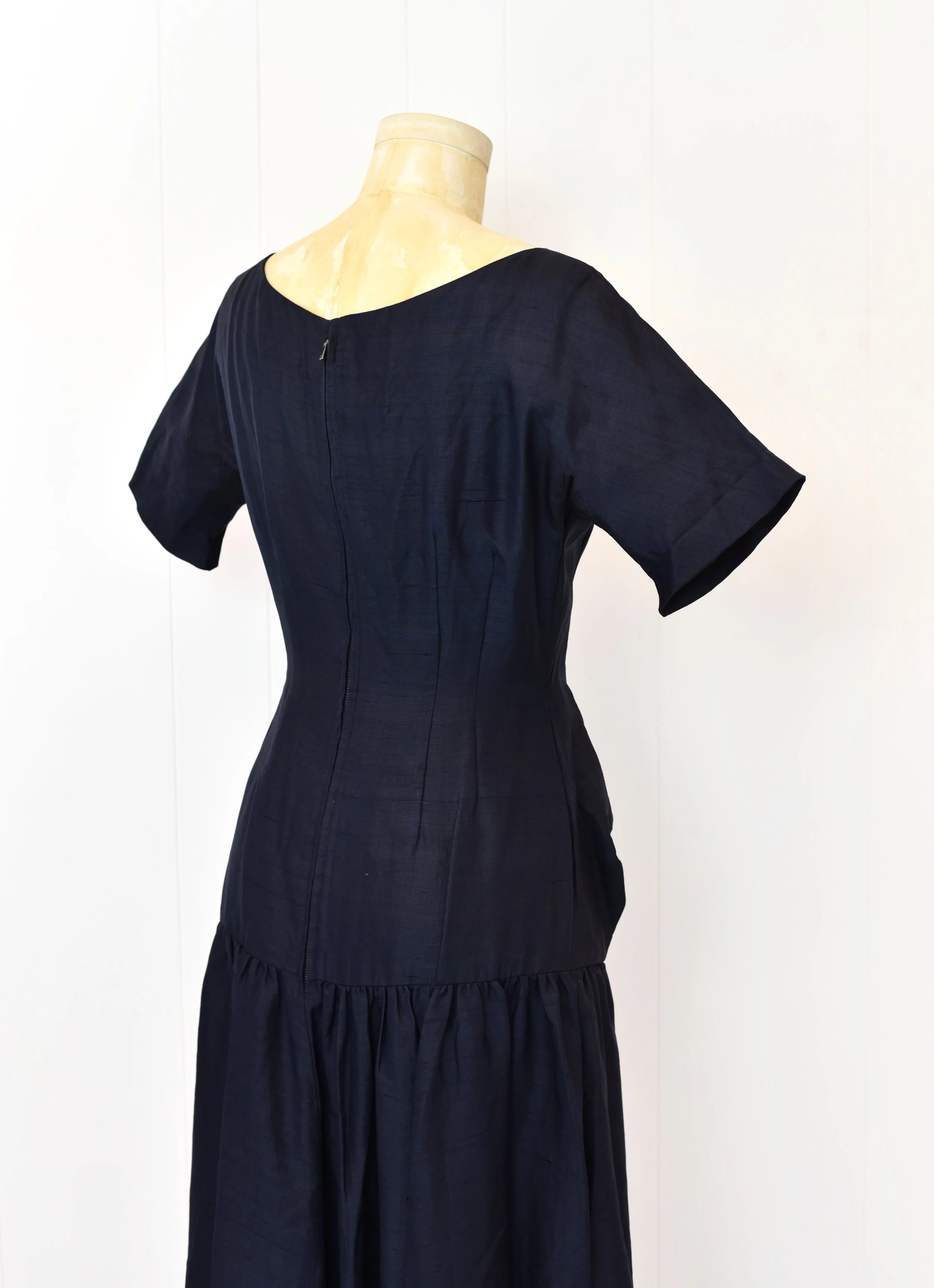 1950s Navy Blue Silk Dropwaist Party Cocktail Mrs. Maisel Pinup Dress