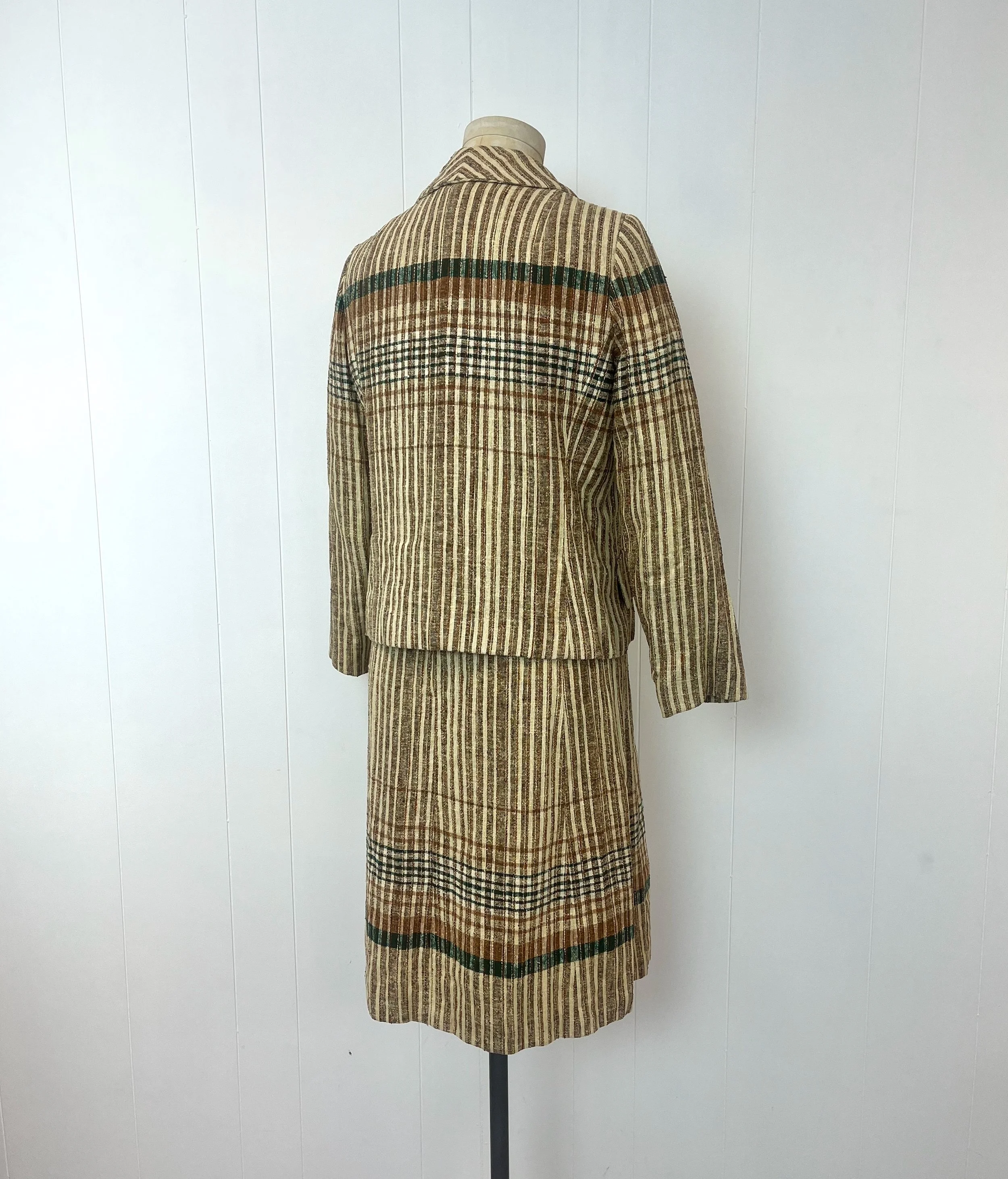 1970s Striped Brown Green Abe Schrader John Baldwin Dress Jacket Matching Two Piece Suit Set