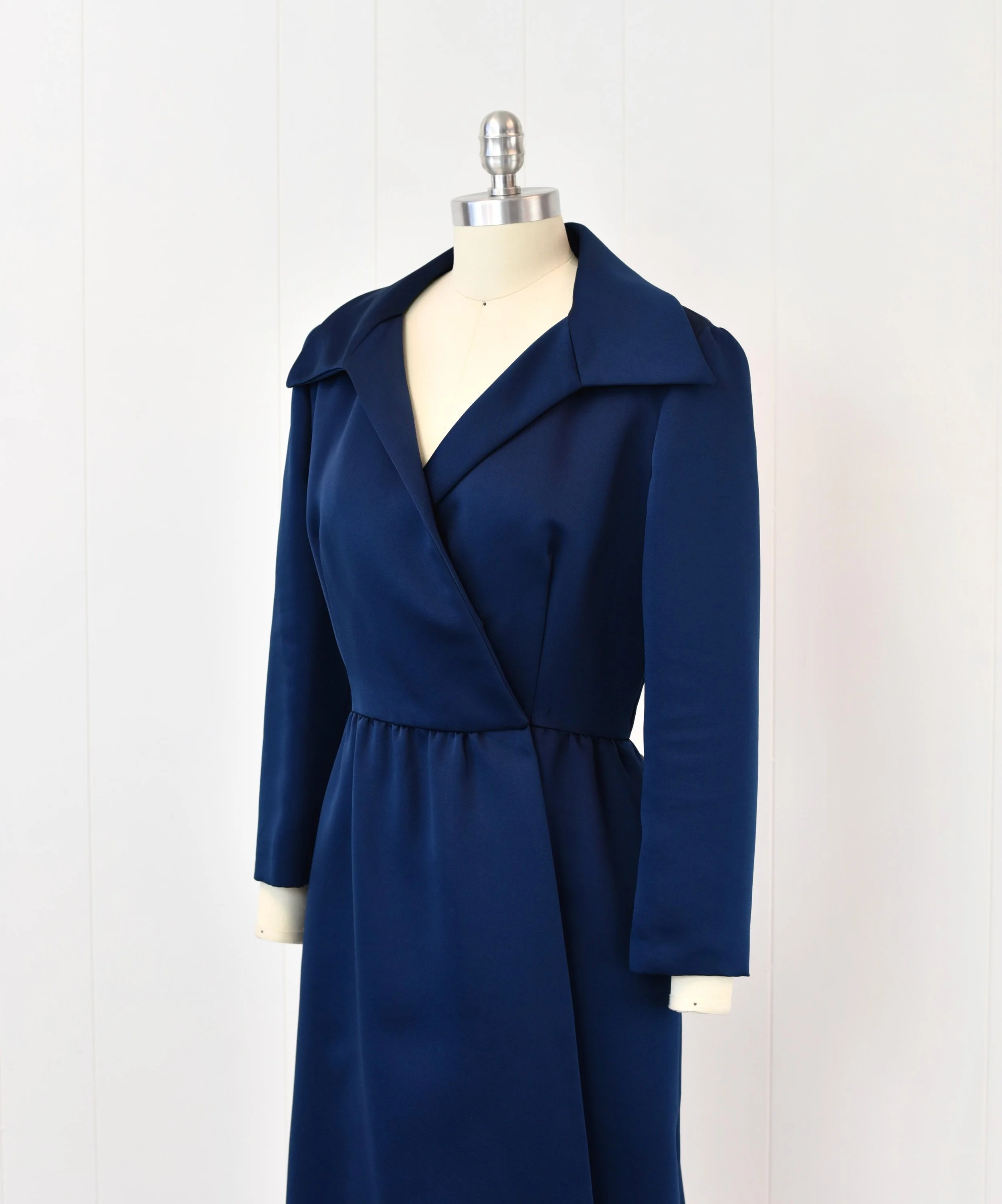 1970s Mollie Parnis Dark Blue Dress Duster Jacket Coat