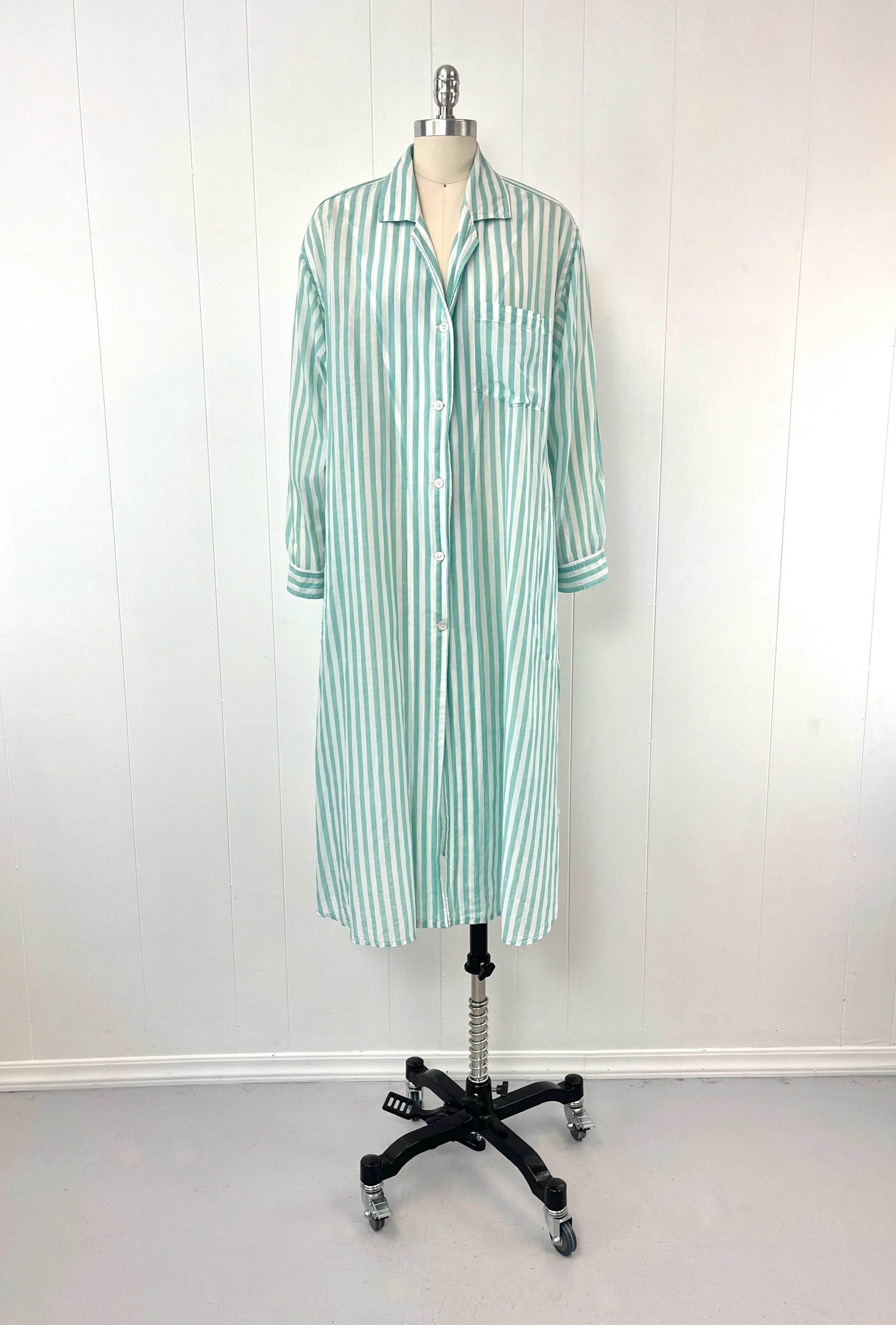 1980/1990s Kenzo Aqua White Striped Cotton Summer Shirt Dress