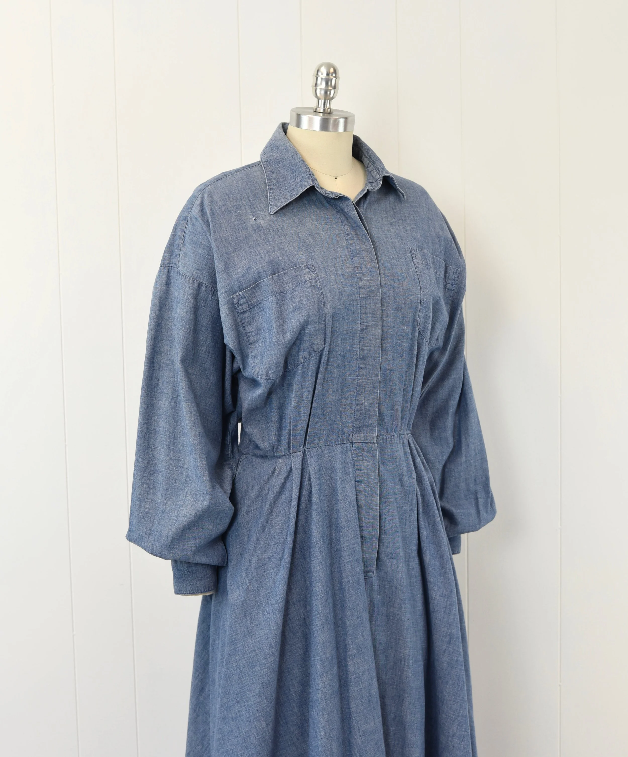♥ Condition: Very good vintage condition overall. There are a few small little holes on front of bodice that have patches on the back. Color variation to blue. Some small spots. Presents well, sold as is.