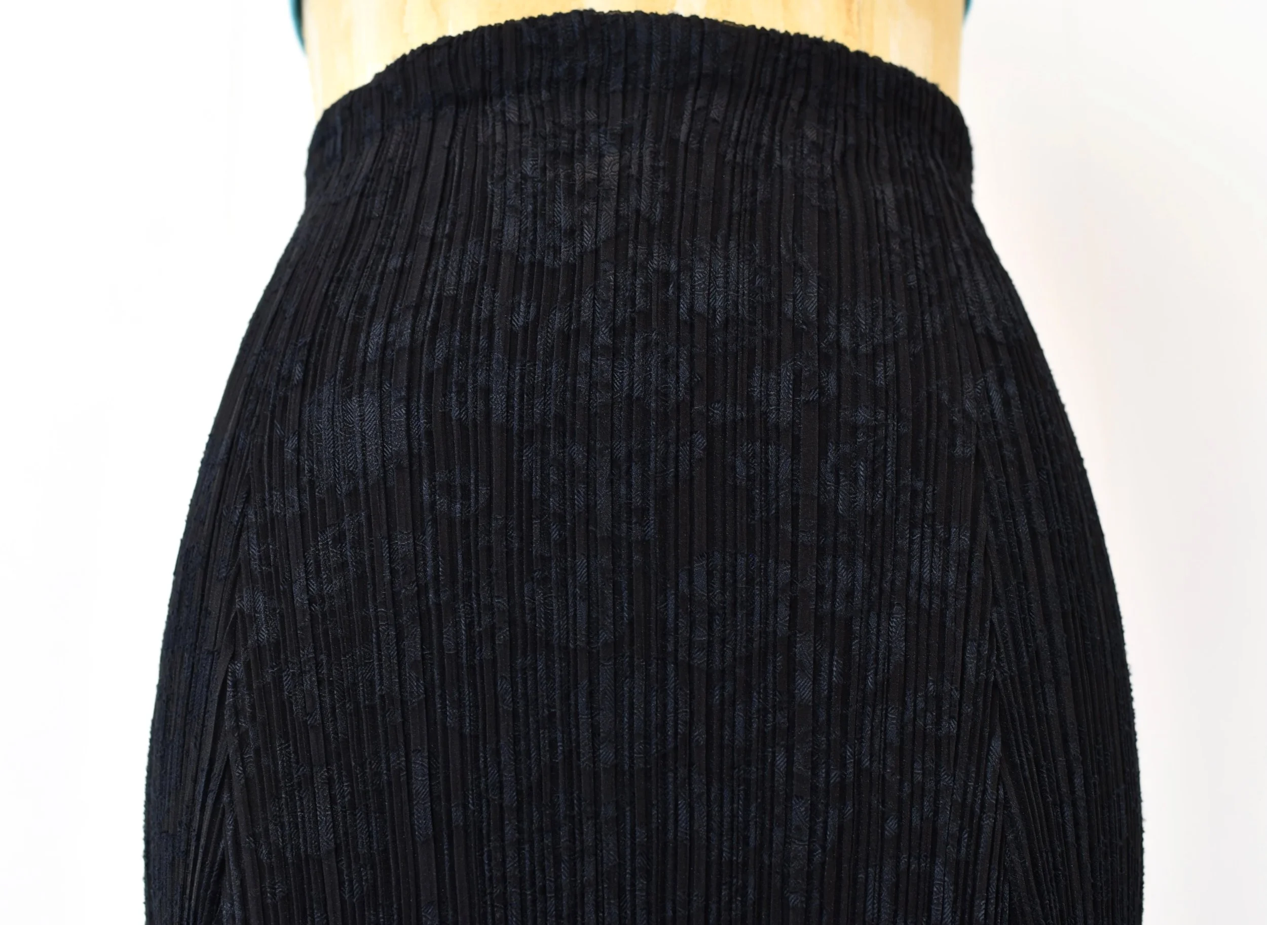 1990s Y2K Issey Miyake Black Pleated Butterfly Floral Embroidered Maxi Skirt
