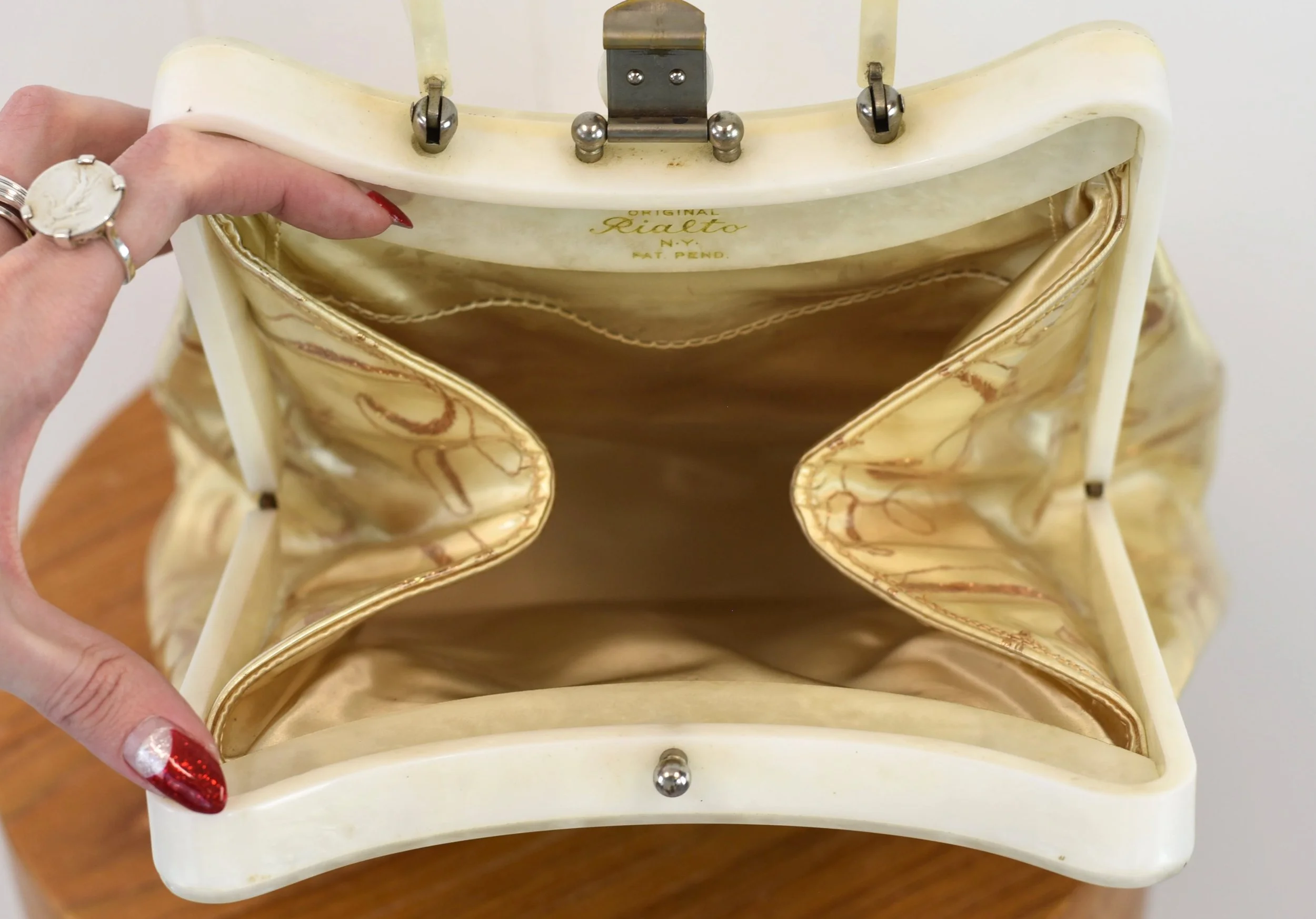 1950s Original Rialto New York Lucite Gold Metallic Glitter Pinup Mid Century Purse Handbag