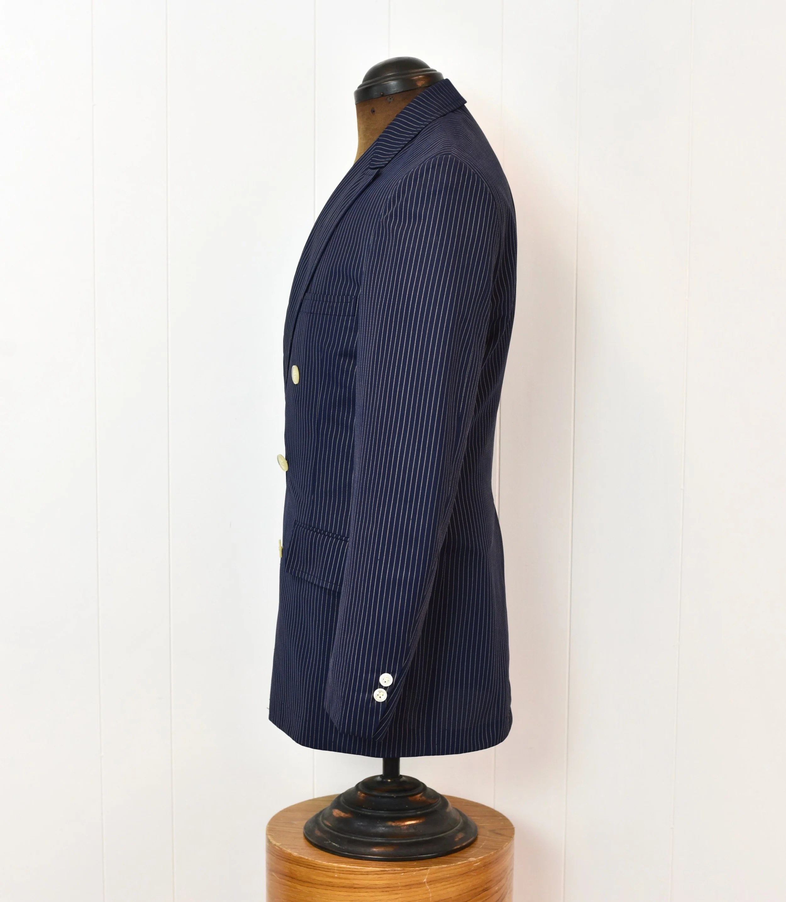 1970s Navy Blue White Pinstripe Tailored by Palm Beach Mens Suit Jacket Blazer