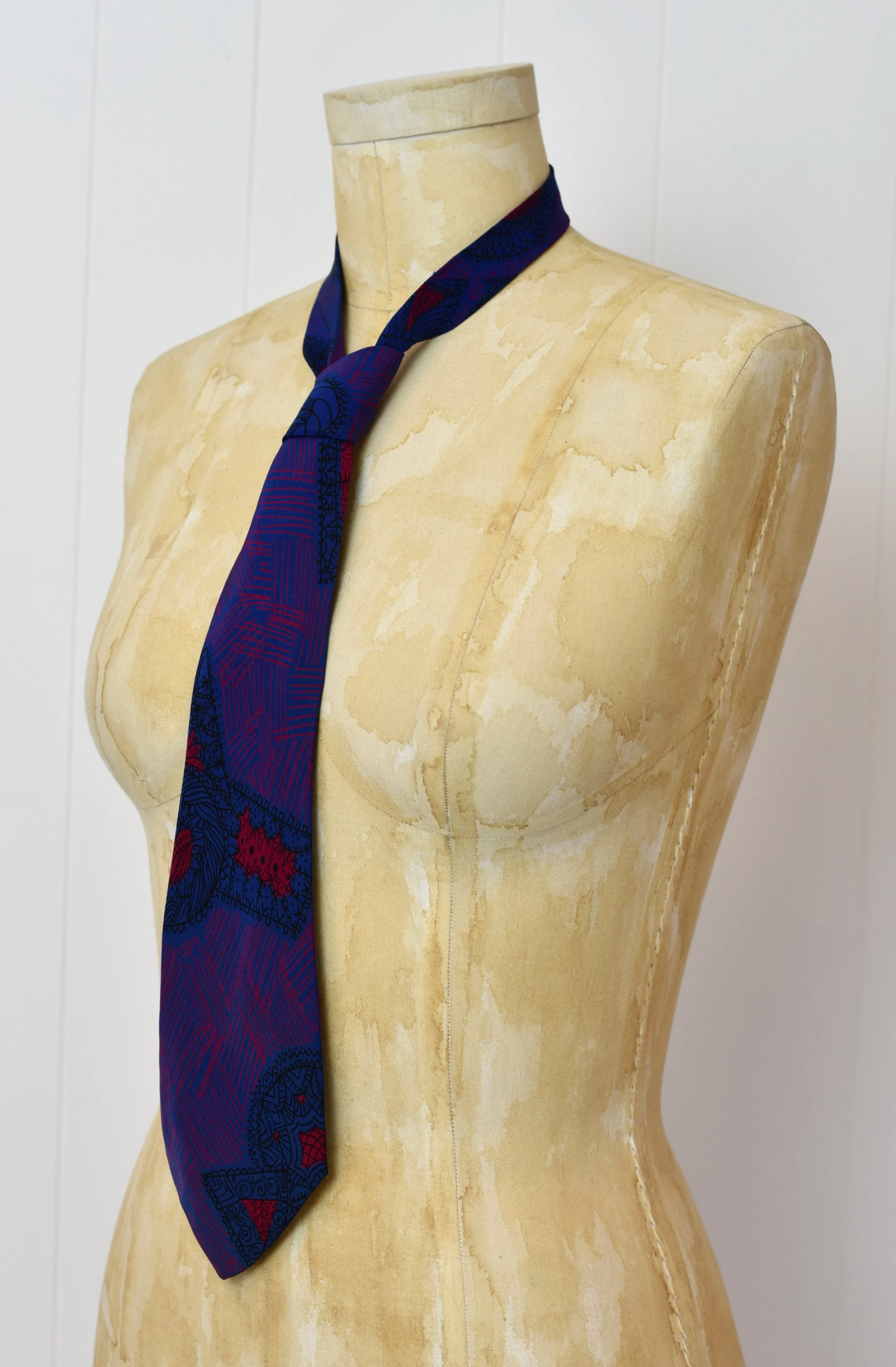 1940s/1950s Blue Red Abstract Novelty Print d'Arsac Park Avenue New York Tie