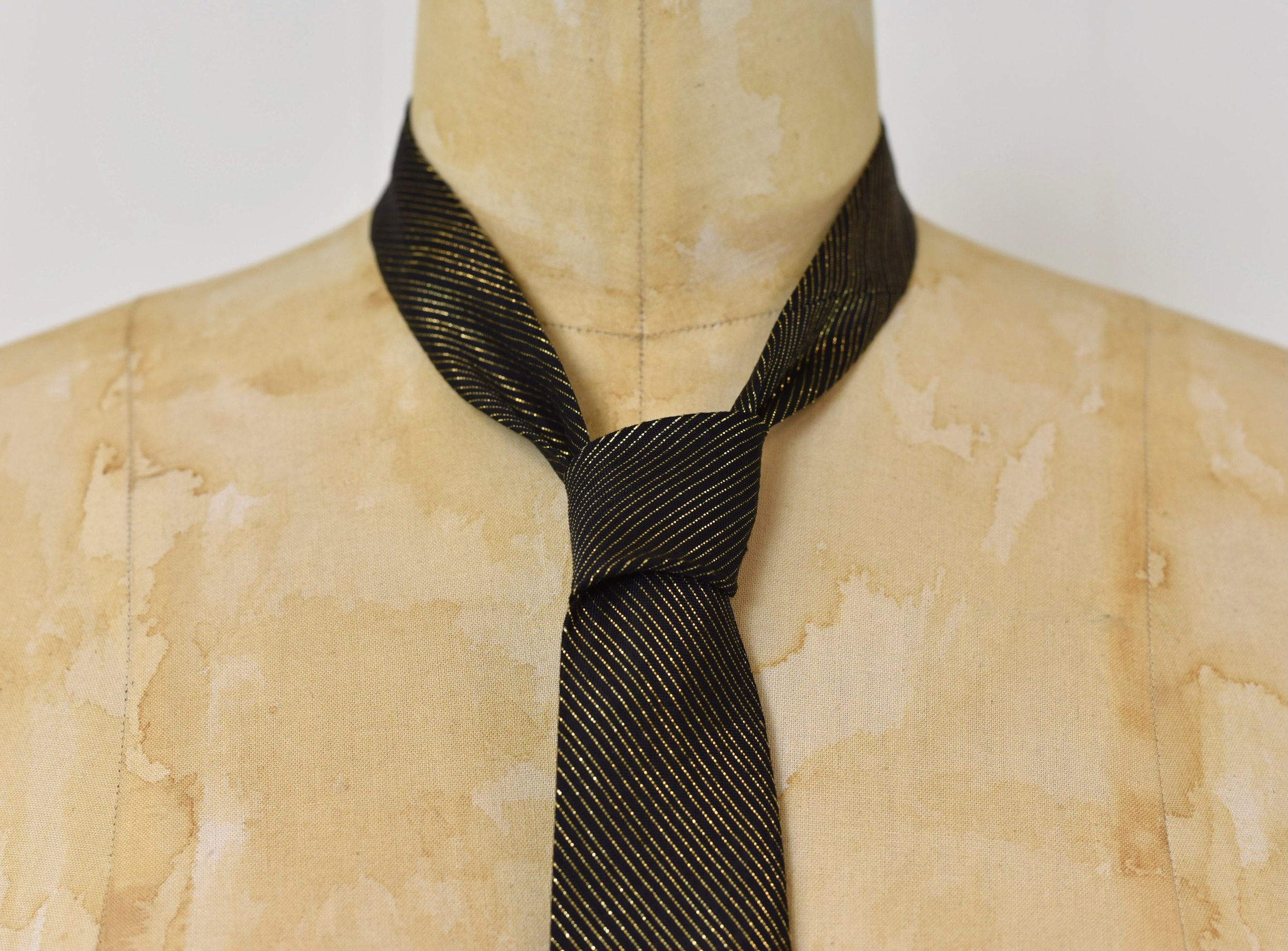 1940s/1950s Hand Painted Marlin Swordfish Novelty Print Metallic Gold Black Striped Mens Neck Tie