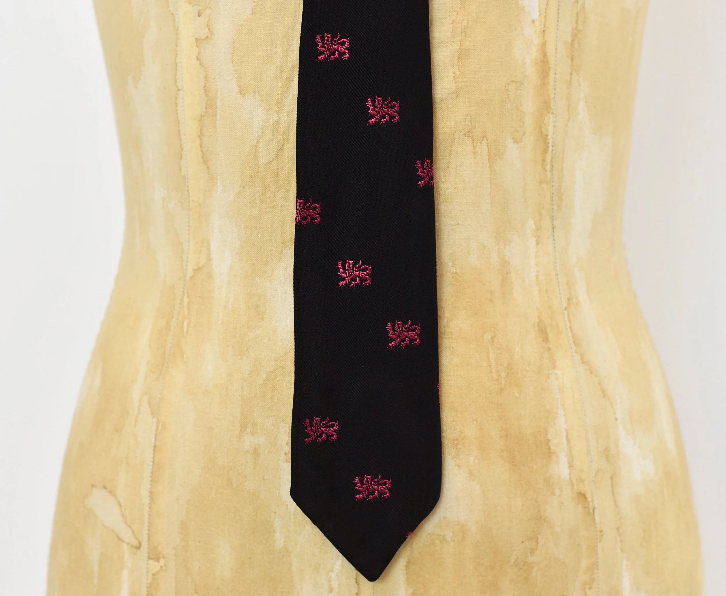 1960s Black Pink Griffin Novelty Print Haband Acetate Mens Skinny Neck Tie