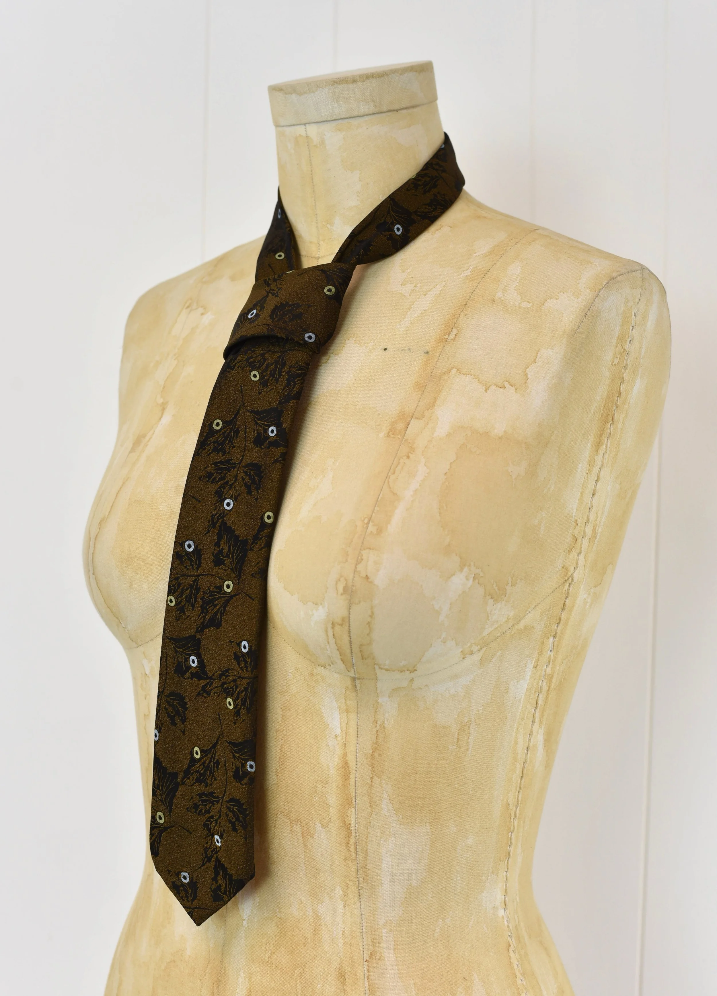 1970s Leaf Botanical Print Brown Green Wemlon by Wembley Mens Neck Tie