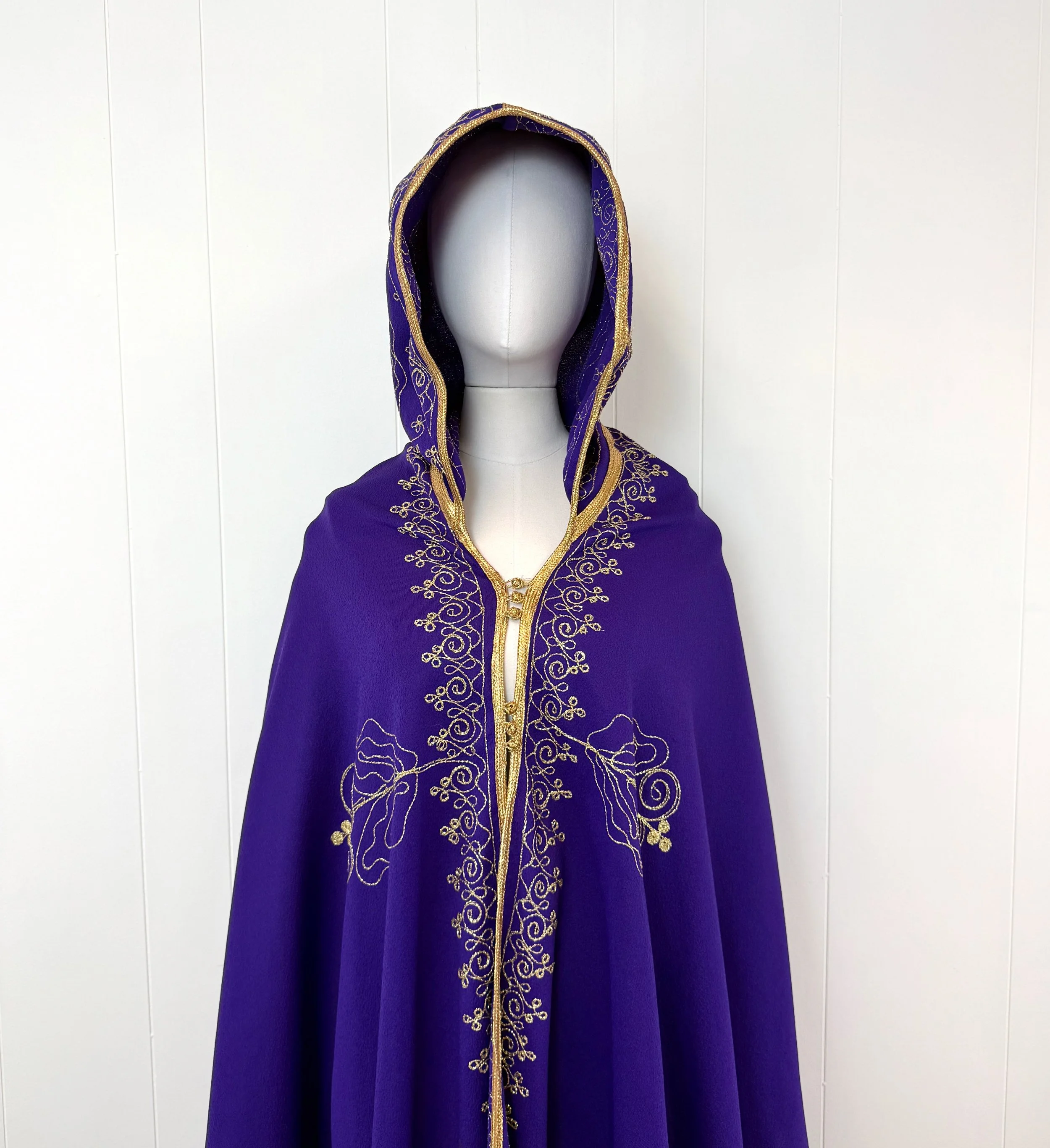 1960s/1970s Purple Metallic Gold Embroidered Hooded Cape Jacket Coat