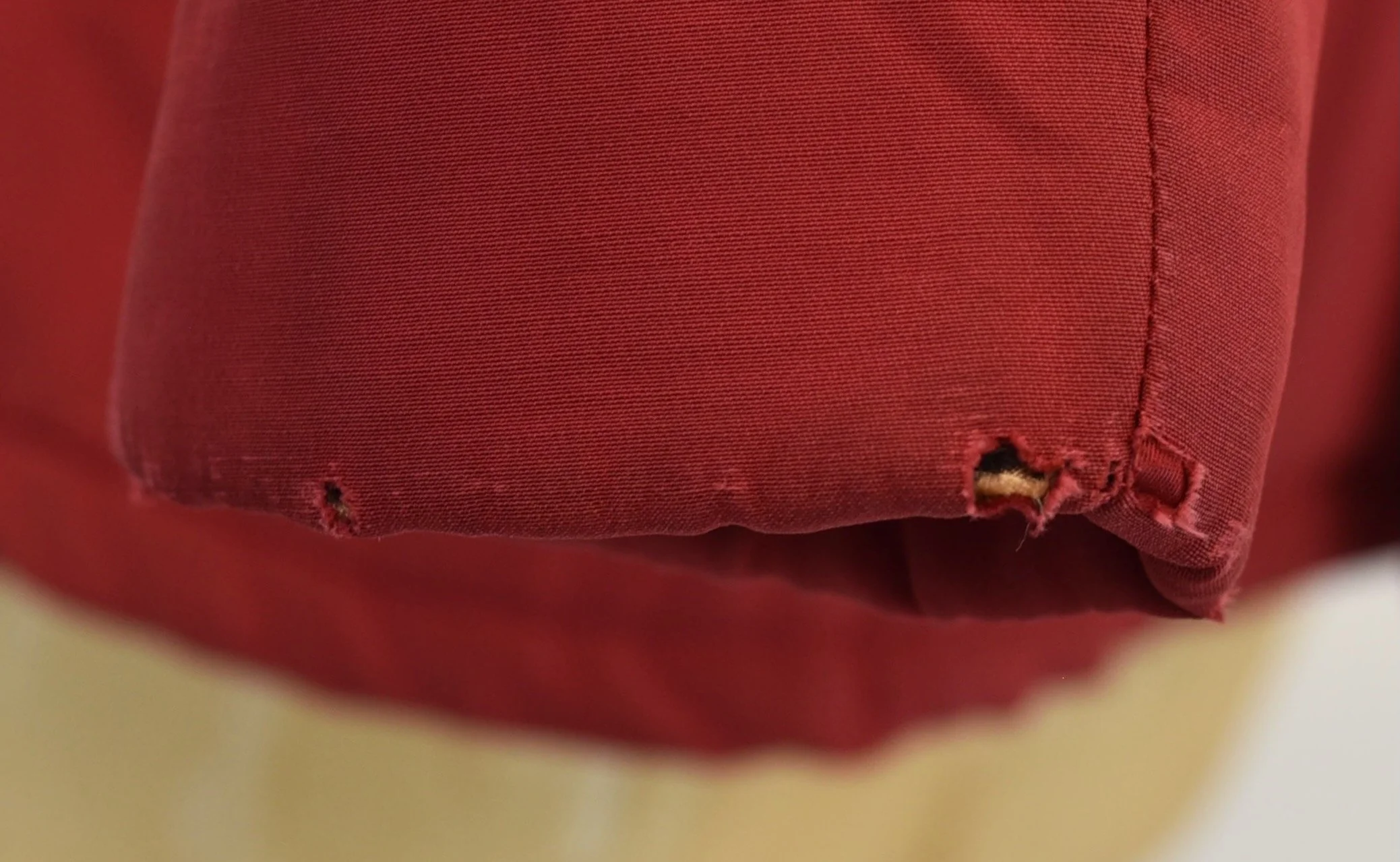 ♥ Red nylon blend material with knit interior cuffsl