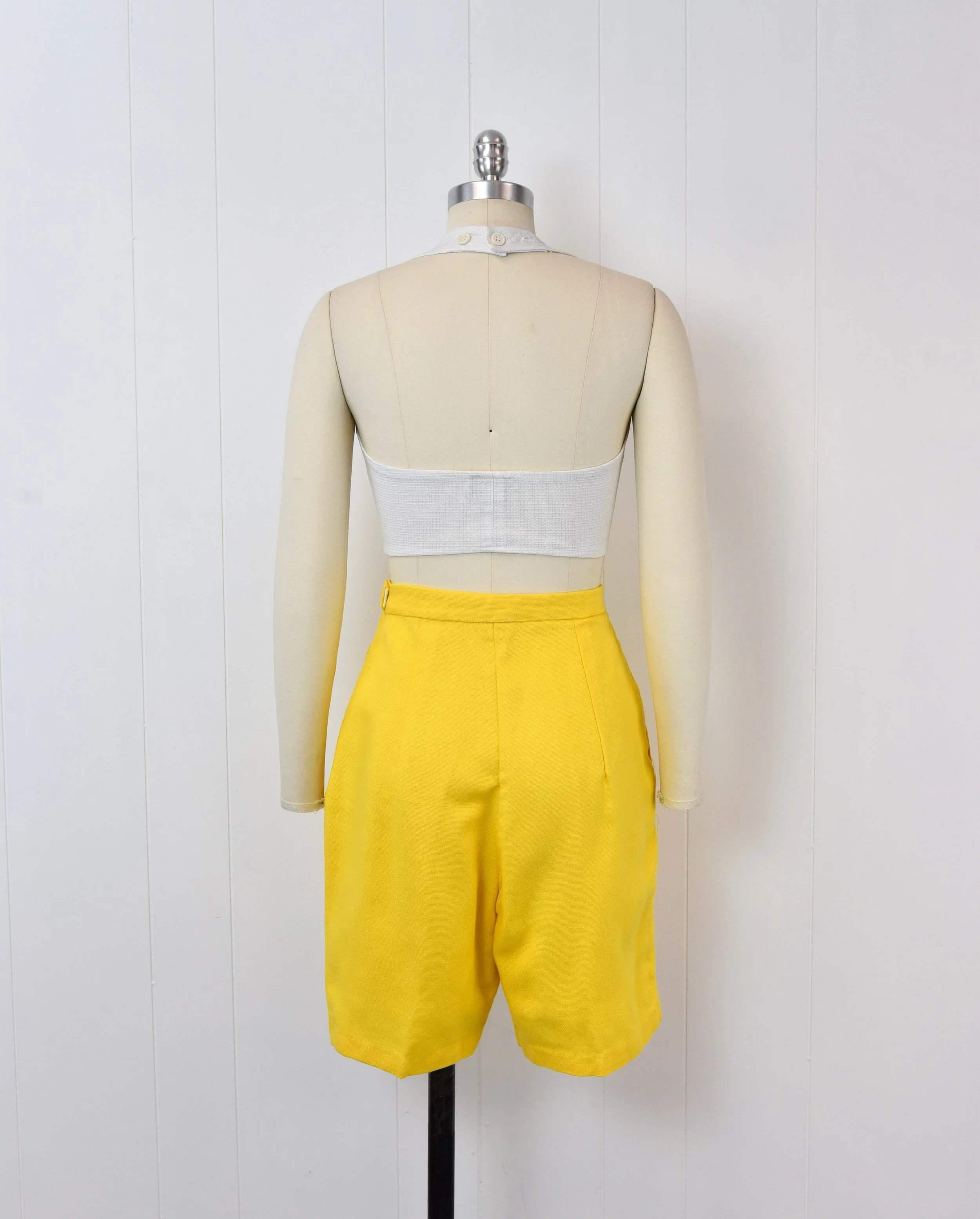 1950s/1960s Lemon Yellow Cotton Linen Mid Century High Waist Bermuda Shorts