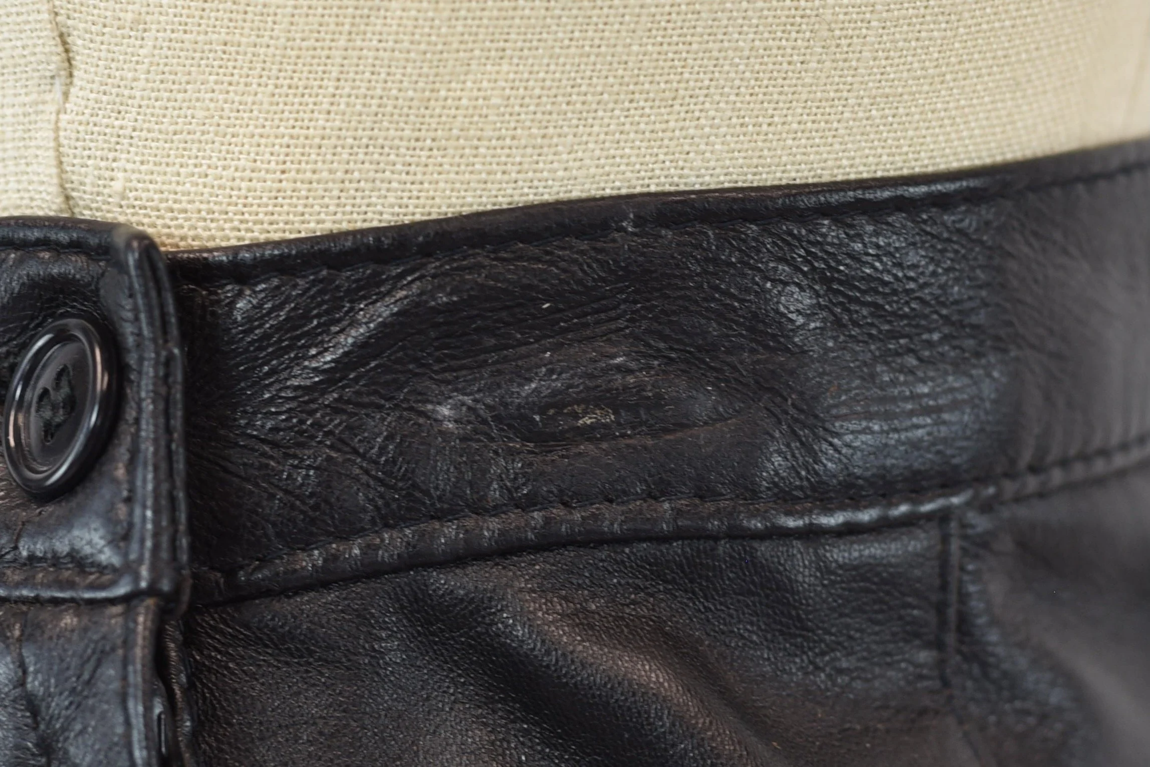 ♥ Condition: Very good vintage condition. Some scuffs, marks, and creases with indentations at waistband. Presents well as a whole, material is in strong shape. Sold as is.