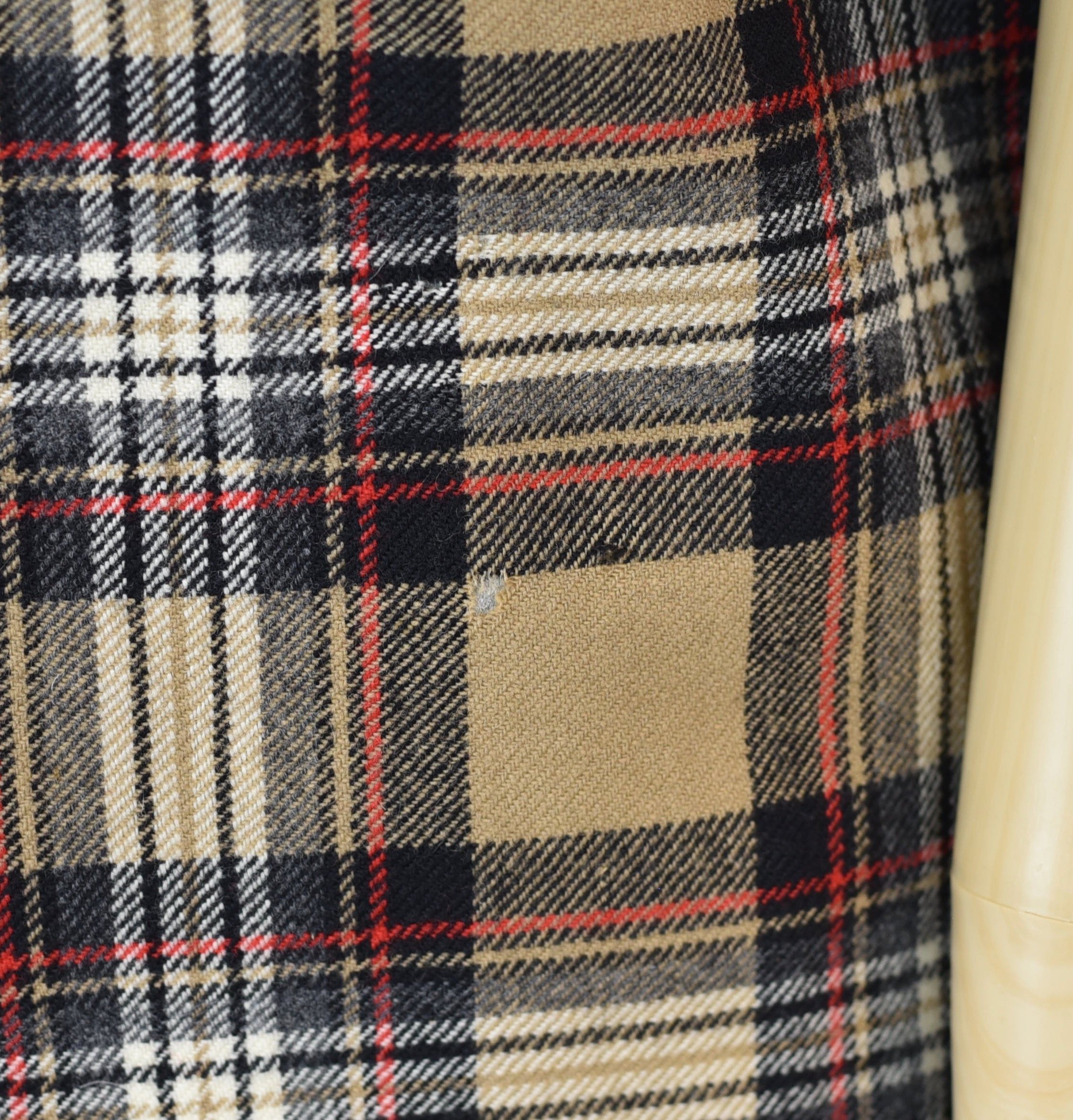 ♥ Wool material in a classic brown, red, black, and white plaid print